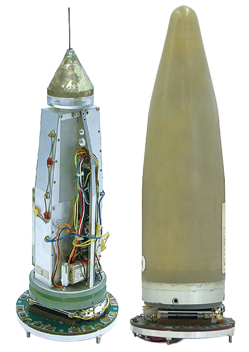 写真は後期に搭載されていたゾンデ部外観と、内部の写真です。